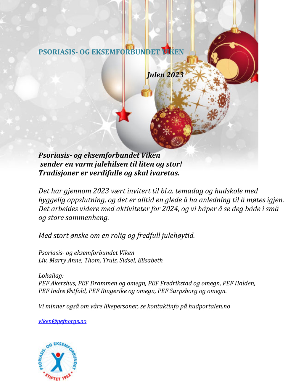 Psoriasis- og eksemforbundet Viken sender en varm julehilsen til liten og stor!